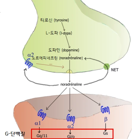 그림3. 노르에피네프린의 작용기전<노르에피네프린>