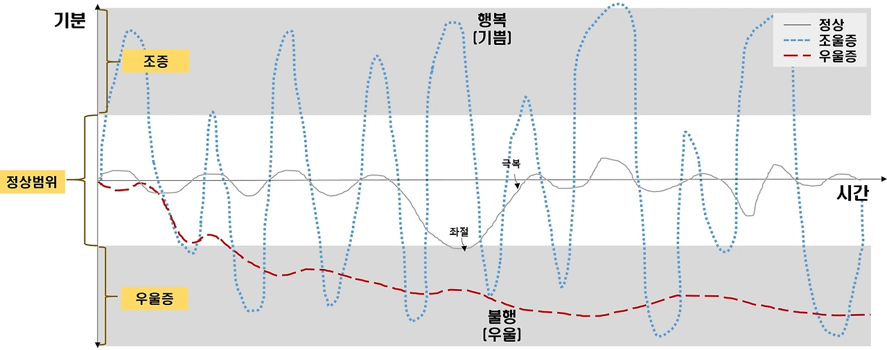 그래프1. 정상, 조울증, 우울증의 기분 변화