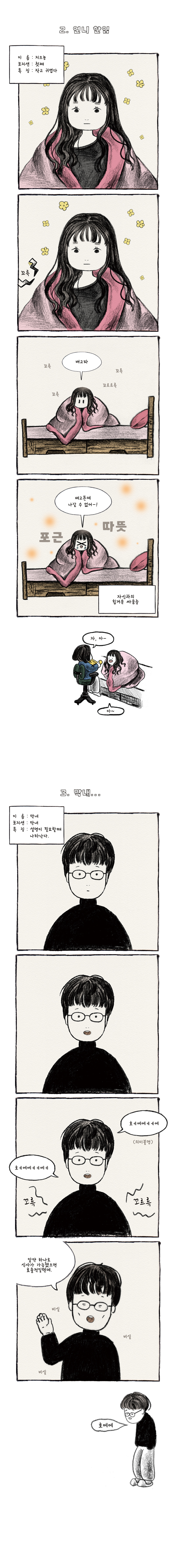 주머니에 넣어둔 작은 손난로처럼 소소하지만 따스한 그림을 그리고 있습니다. 마음이 따뜻해지면 세상이 몽글몽글 부드러워보이지 않을까요?