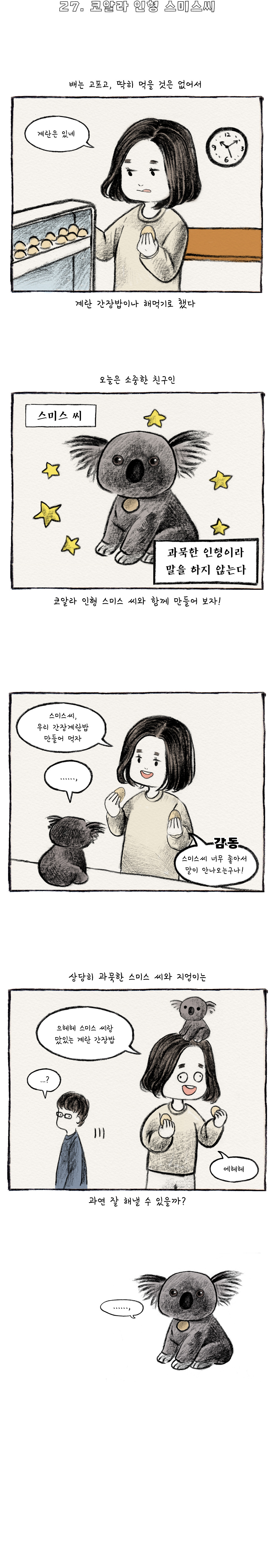 주머니에 넣어둔 작은 손난로처럼 소소하지만 따스한 그림을 그리고 있습니다. 마음이 따뜻해지면 세상이 몽글몽글 부드러워보이지 않을까요?
