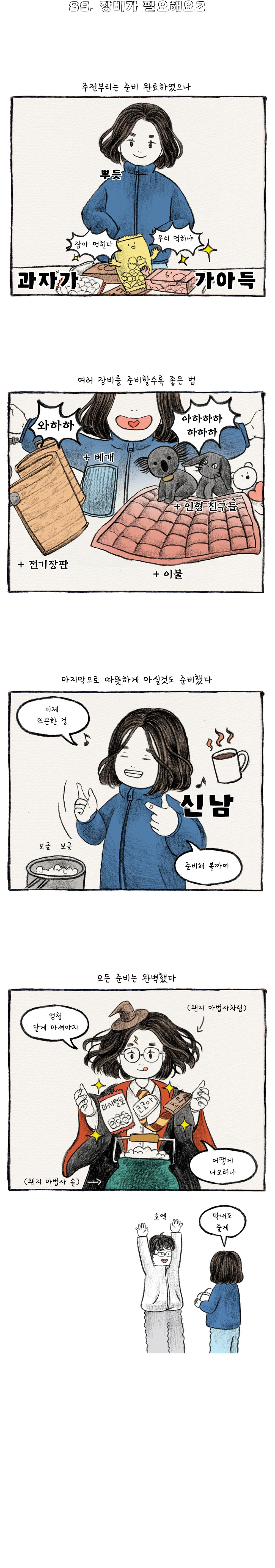 주머니에 넣어둔 작은 손난로처럼 소소하지만 따스한 그림을 그리고 있습니다. 마음이 따뜻해지면 세상이 몽글몽글 부드러워보이지 않을까요?
