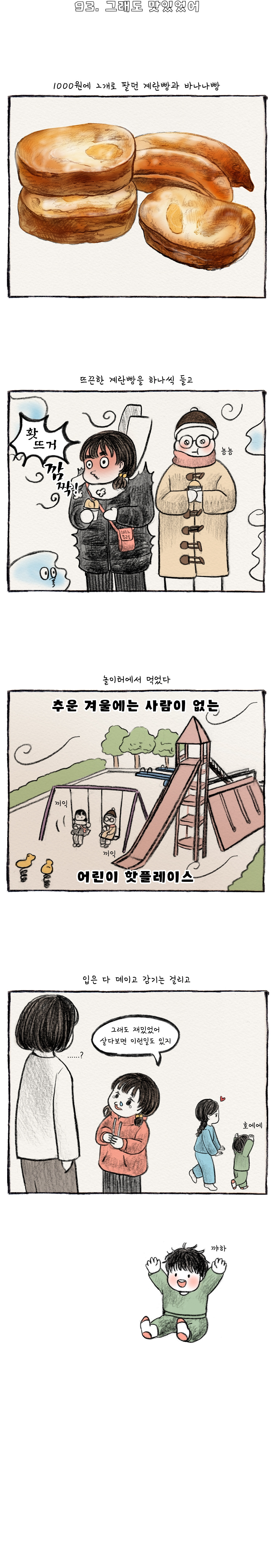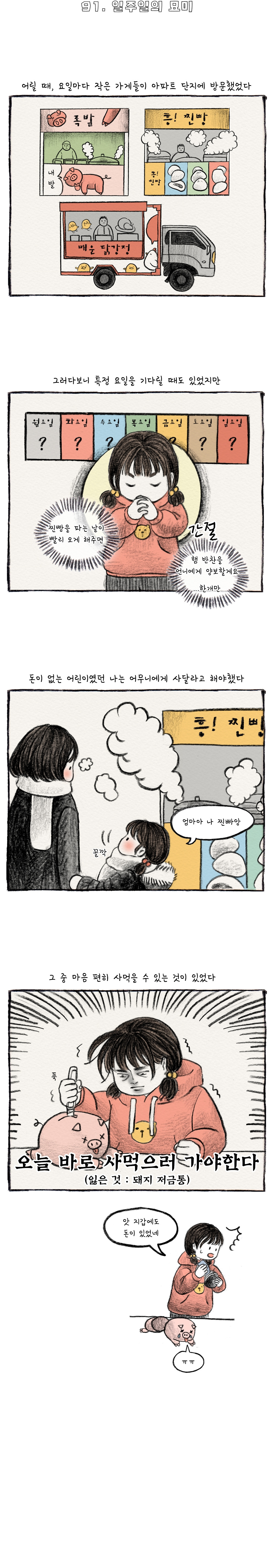 주머니에 넣어둔 작은 손난로처럼 소소하지만 따스한 그림을 그리고 있습니다. 마음이 따뜻해지면 세상이 몽글몽글 부드러워보이지 않을까요?