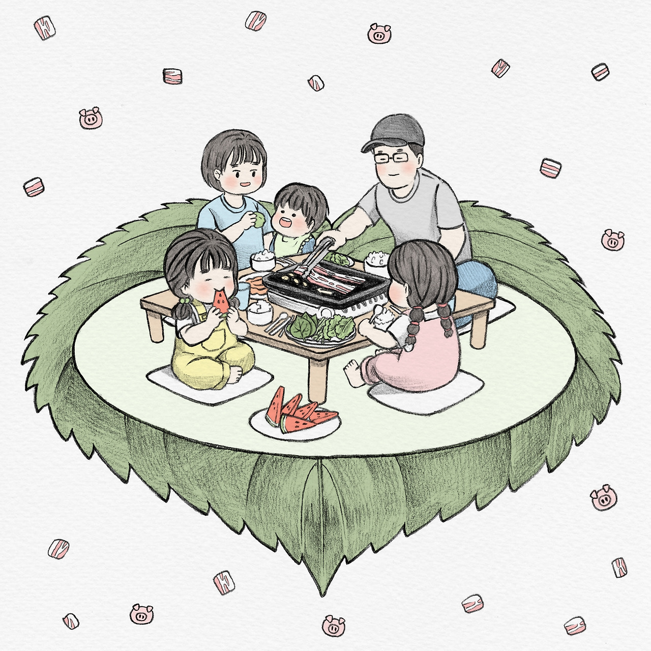 어릴 적 삼겹살 파티를 할 때면, 부모님이 구워주시는 고기를 맛있게 먹었던 기억이 납니다.