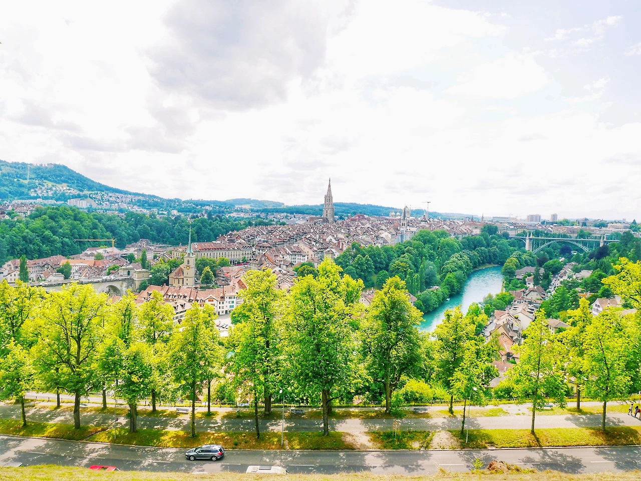창문을 통해 날 비추는 햇살은 따사로운데, 숙소가 있는 인터라켄 지역은 흐린구름이 보인다. 바젤과 가까운, 그래서 비교적 날씨가 좋은 베른을 택했다.