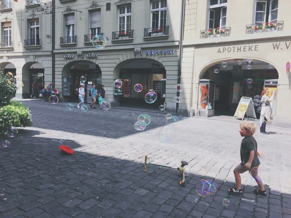시계탑 밑을 지나자 비눗방울이 흩날리며 나에게 다가왔다. 그 비눗방울에 손을 대자 톡 터지고 만다. 한번 더 손을 올리는데, 그 비눗방울을 터트리기위해 이곳 저곳을 뛰어다니며 웃는 아이들이 보였다. 올린 손을 다시 내리고 비눗방울을 터트리는대신, 웃음을 터트리는 그 아이들을 사진속에 담았다. 빛을 머금은 비눗방울과 그 것을 향해 손을 뻗는 아이들. 이 곳 풍경은 그랬다. 삶이 이렇게 아름답다는 것을, 살아 있는 것만으로, 그냥 여기 서있어서 바라보는 것만으로도 알 수 있다는 것을 주장하는 듯 했다. 지금 이 순간 그건 사실이었다.
