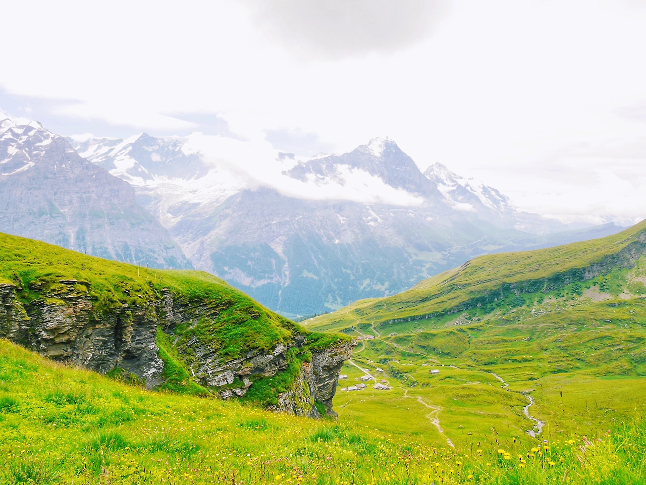 케이블카를 타고 피르스트 산을 올라갔다. 정상에 가까워질 수록 내 발밑에 그린델발트의 모습이 펼쳐졌다. 하늘에 가득 찬 구름때문에 흐리긴했지만, 어둠이 내려 앉기에는 이 곳이 너무도 푸르렀다.