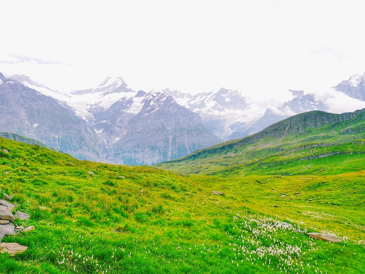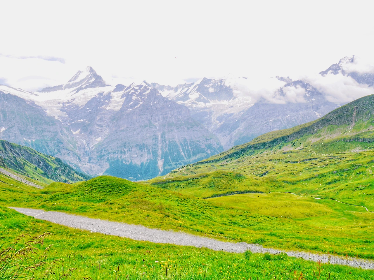 그린델발트, 다음에 오게 된다면 꼭 이 곳에서 숙소를 잡고, 되도록이면 오래 머물다 가고싶다. 스위스 하면 떠올리는 푸른 산, 그 중간중간에 자리한 오두막 같은 집들이 있는 그런 곳이었다.
