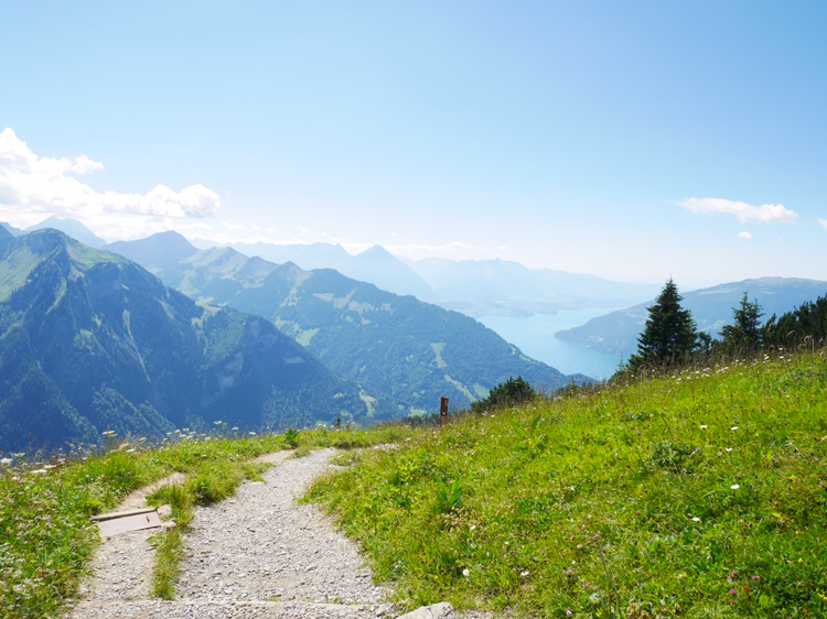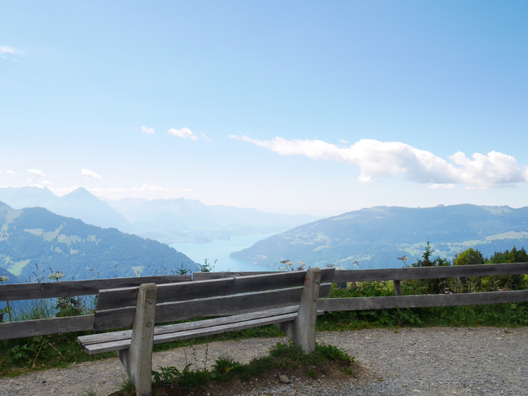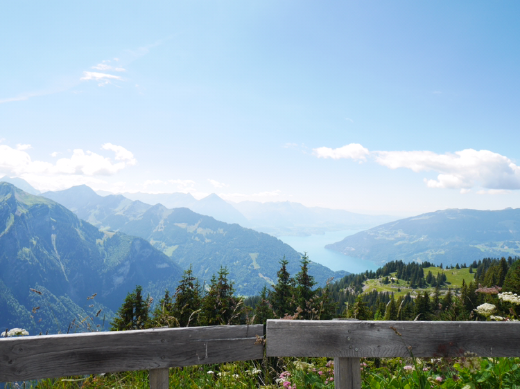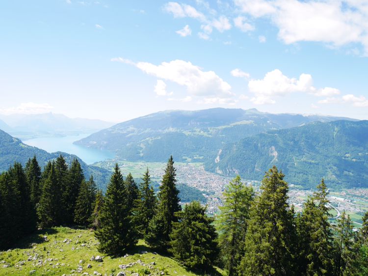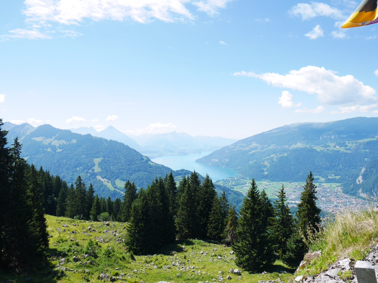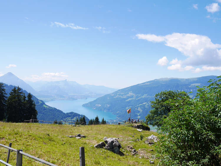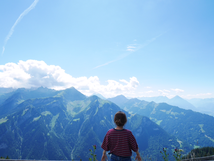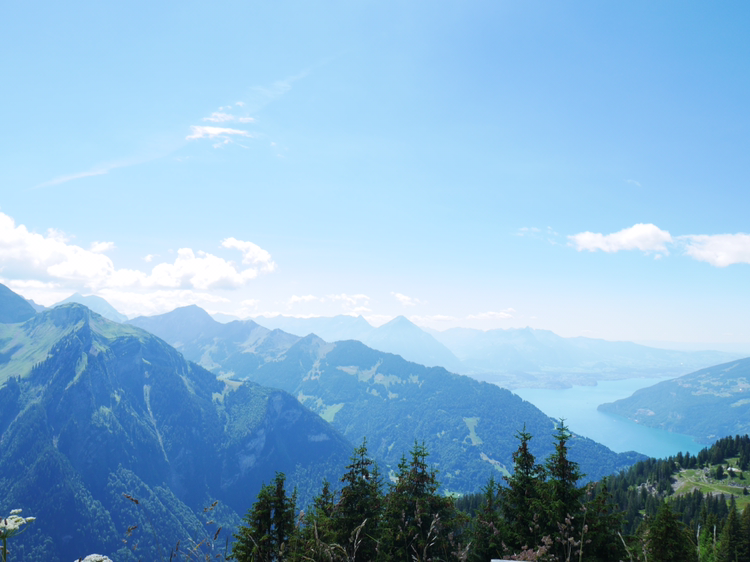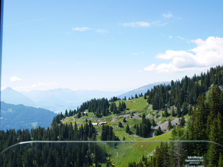 루체른으로 가는 일정을 미루고 쉬니케 플라테로 향했다. 인터라켄에서 5분정도 떨어진 곳에서 산악열차를 타고 올라가는 곳이었다. 빨간색, 초록색의 작은 산악열차는 그 모습 자체만으로도 내가 가야할 곳의 아름다움을 알려주는 듯 했다. 어떤 요정이 사는 곳으로 데려다 줄 것만 같은 그 열차는 덜컥 덜컥 거리며 끊임없이 위로 올라갔다. 올라갈 수록 인터라켄의 모습이 한 눈에 담겼다. 호수의 사이라는 이름의 뜻이 여실히 느껴졌다. 작게 난 창문으로 보이는 것은 그 어떤 것 보다 광활했다.