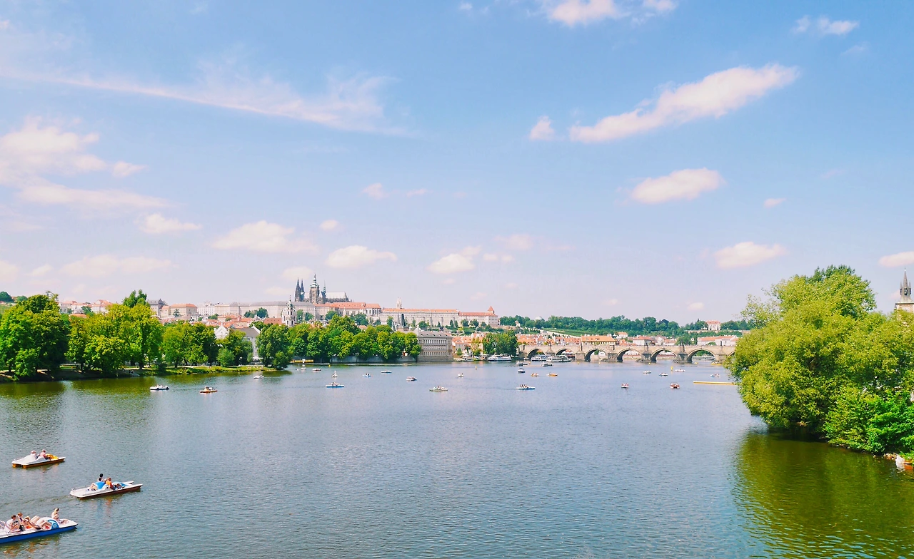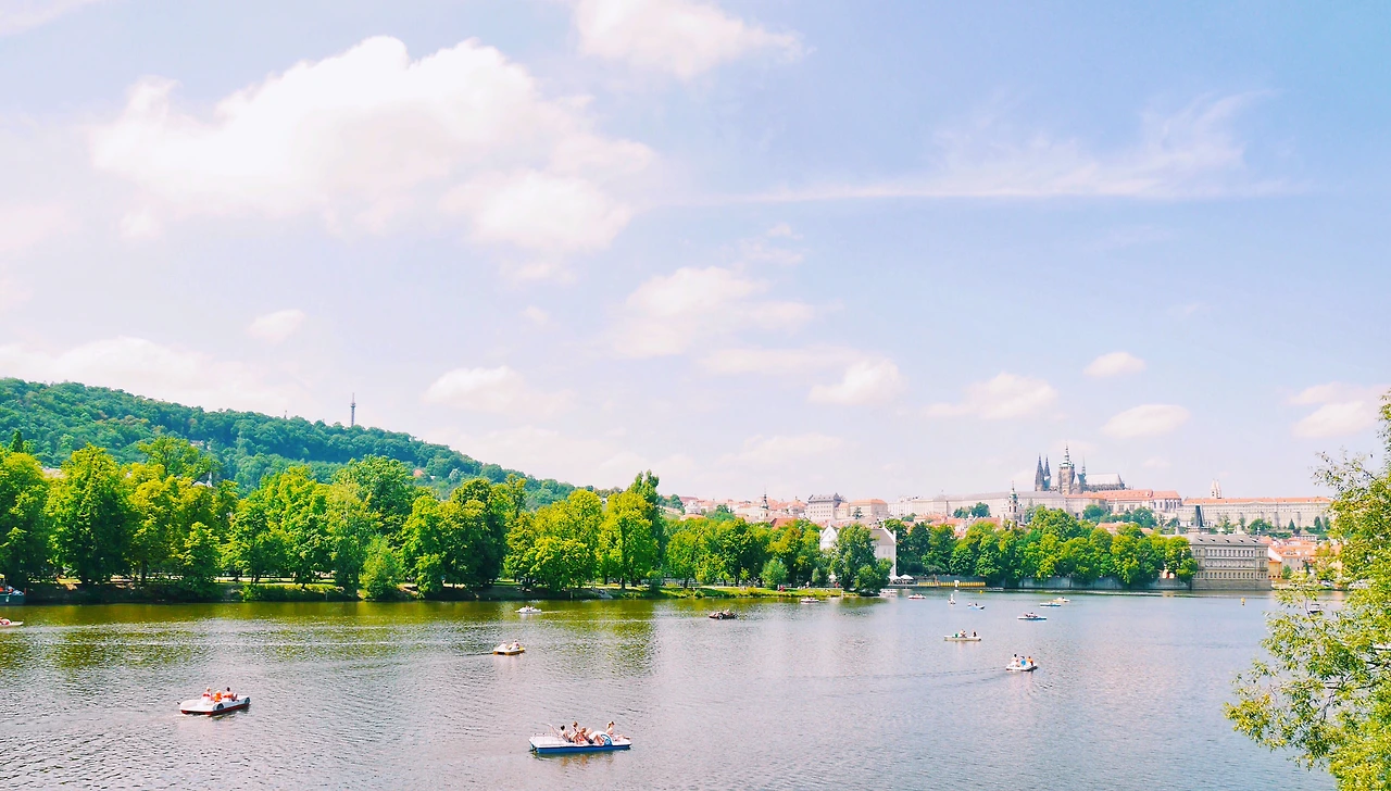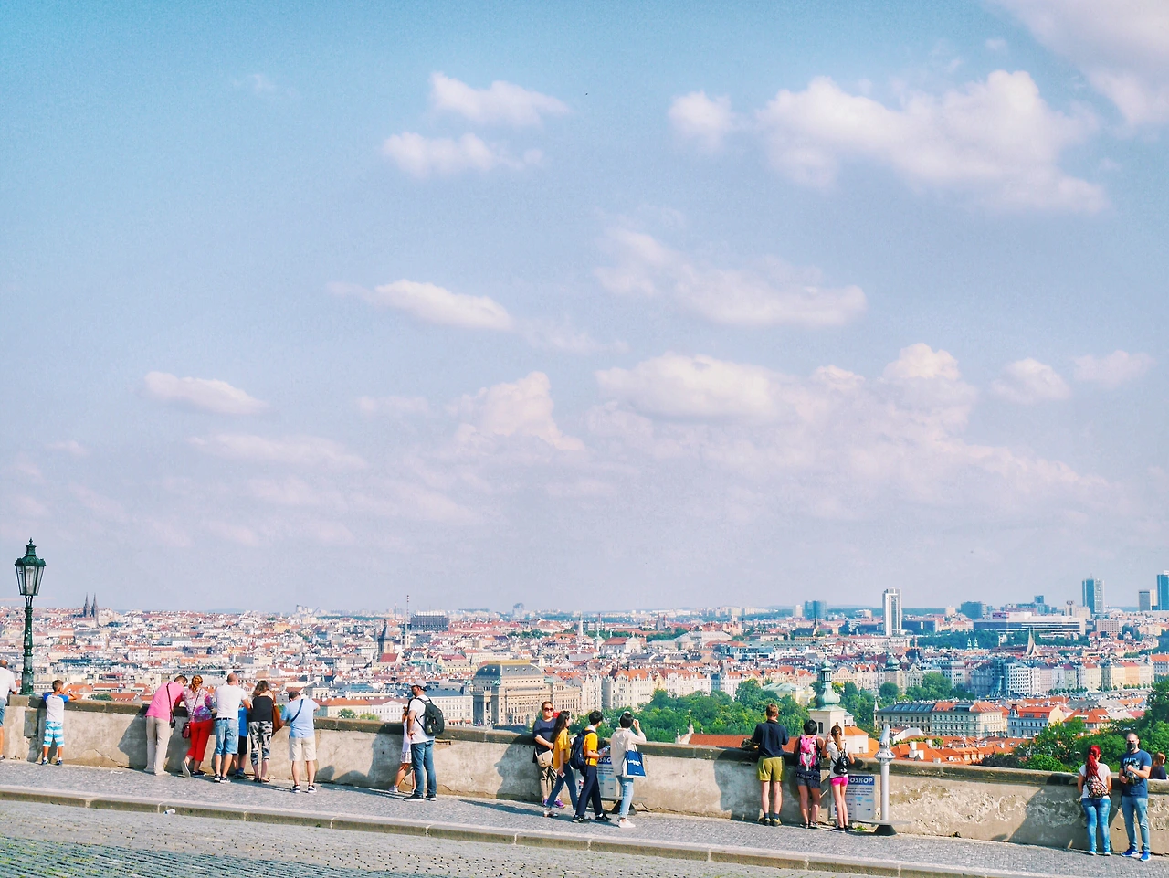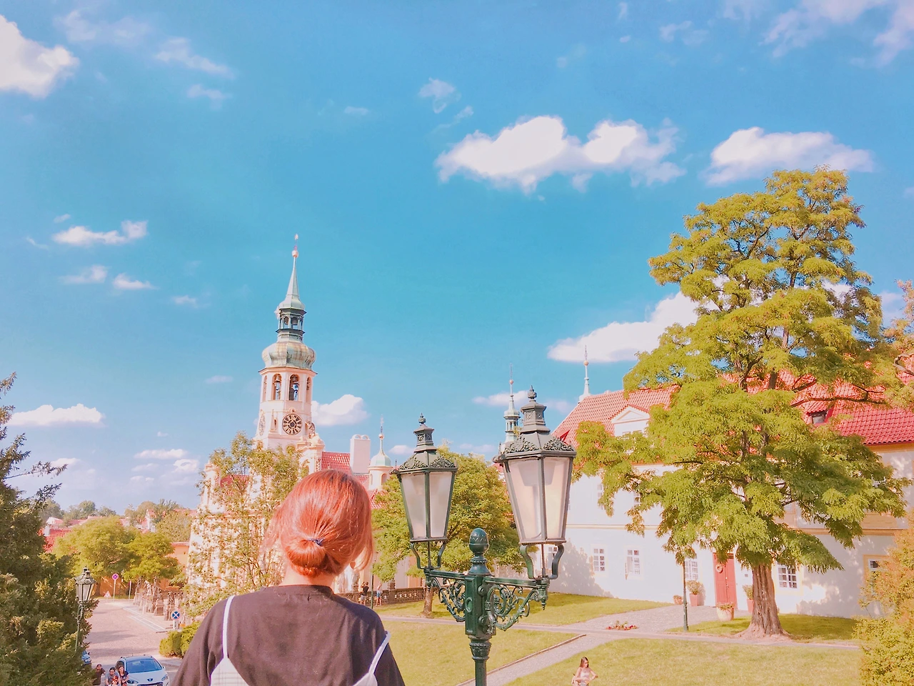 푸른 하늘 위 뭉게지어 떠다니는 구름, 그리고 그 밑에 옹기종기 모여있는 빨간 지붕들 까지.. 이따금씩 웨딩사진을 찍는 사람들이 지나간다. 가장 행복한 순간에 가장 행복한 모습 그대로를 담아내기 좋은 곳이라 생각했다. 이 작은 프라하는, 이 세상 누구보다 사랑하는 사람을 생각나게 한다. 그들의 미소가 환했다. 지금의 프라하 처럼,