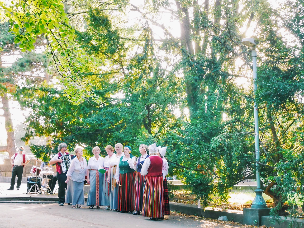 땀이 거의 다 말라갈때 쯤, 내가 누워있는 곳의 맞은편 광장에서 노랫소리가 흘러나왔다. 몸을 일으켜 그쪽을 바라보니, 할머니 할아버지들이 이 곳의 전통옷 같아보이는 옷을 입고 춤을 추고 있었다. 점차 빨라지는 노랫소리에도 아랑곳하지않고 춤을 완벽히 췄다.