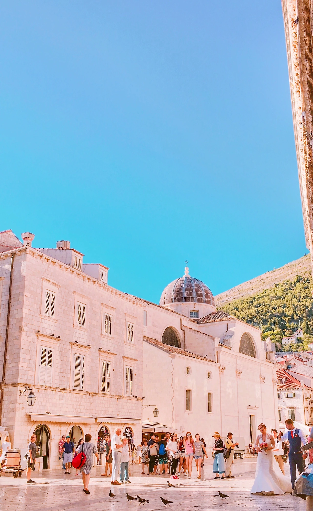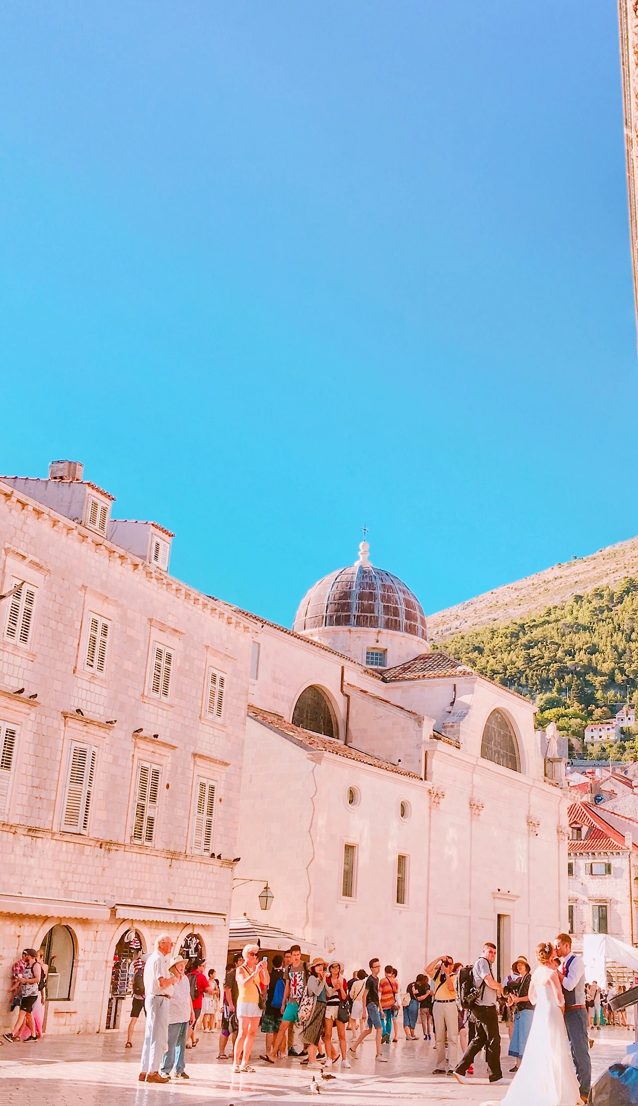 이 곳 길목에서 자주 마주쳤던건 나와 비슷한 여행객, 햇살에 빛나는 베이지색 건물들, 식당 바깥으로 나와있는 테이블과 의자 그리고 웨딩드레스를 입고 분홍색 꽃을 든 여성과 빨간 넥타이가 인상적인 턱시도를 입은 남성이었다. 이 아름다운 곳을 배경으로 웨딩사진을 촬영중인 신혼부부였다. 따라다니려는 건 아니었지만, 발걸음을 멈출만큼 아름답다고 생각하는 곳이 대부분 겹쳤기 때문에 그 날 길을 걷는 내내 자주 마주쳤다.