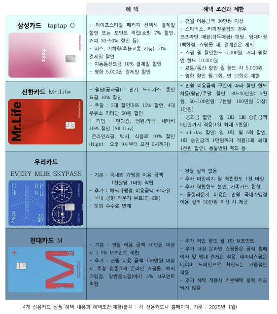 인기 신용카드 4종 비교, 신용카드 혜택의 조건과 한도 피악