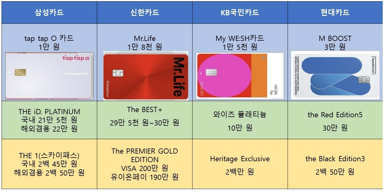 카드 상품별로 연회비가 다르며, 프리미엄 카드일수록 연회비가 비싸다