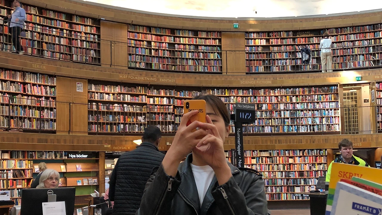 “통근열차”를 타고 스톡홀름으로 갔다. 스톡홀름 지하철 역사는 천 개의 미술관이라고 불릴 만큼 역 하나하나가 다른 테마로 꾸며져있다고 한다. 이곳은 거대한 규모의 시퍼런 굴처럼 생겨, 상형문자 같은 게 그려져 있어 긴 에스컬레이터를 짧게 만들어버린다. 또한 이곳은 ‘시민’이 이용하기에 흔한 오줌 냄새가 나지 않는다는 명예 스웨덴인의 소개가 이어진다. 출구를 찾아 나가는데 문이 안 열려 띨띨한 표정을 짓고 있으니 반대편에서 망설임 없이 다가와 문을 열어주려다가 문이 잠겼다며 유창한 영어로 말해주는 백발의 신사분. 내가 상상하던 선진국이다.
