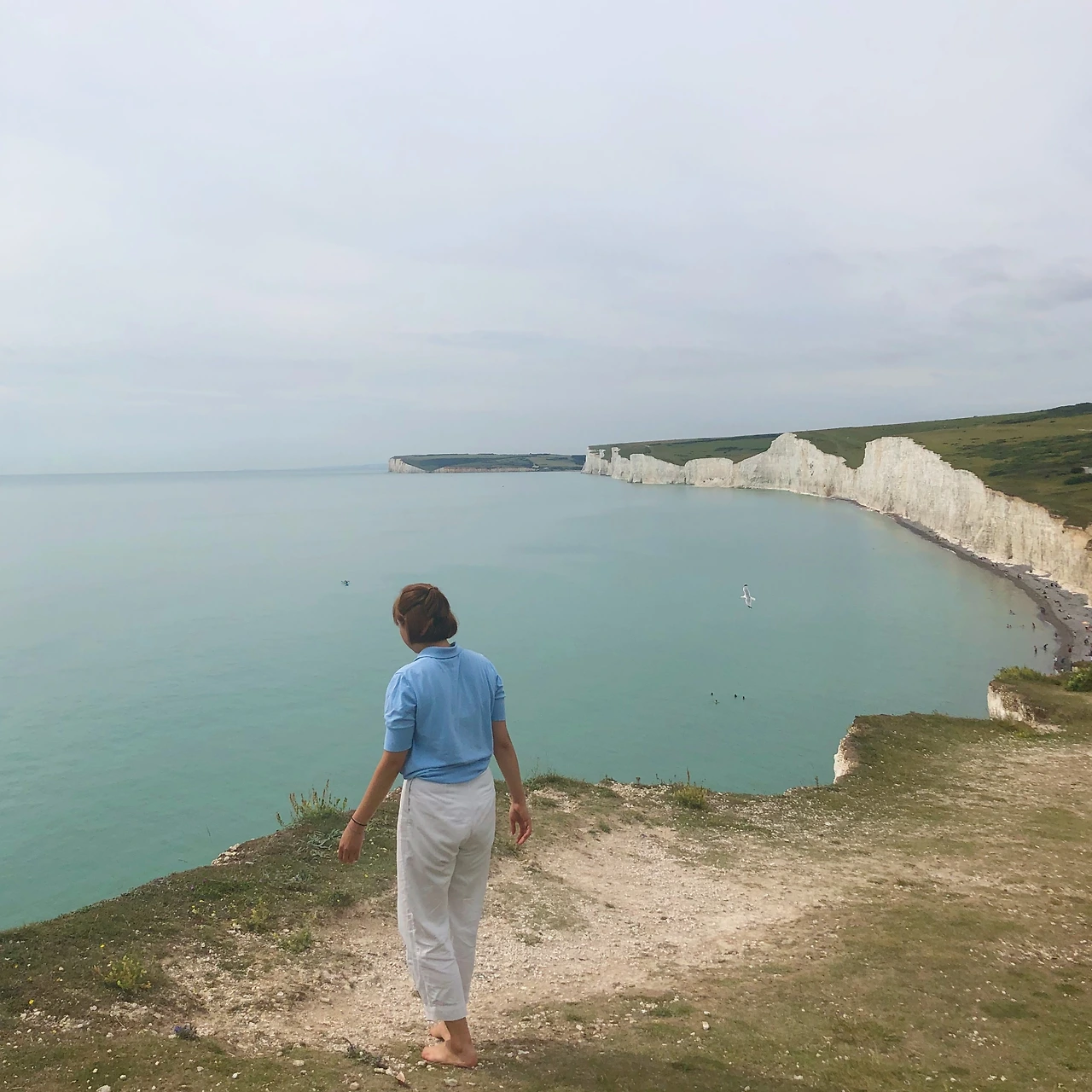 해안 바람에 지금 이 순간도 가파르게 조각되고 있는 그곳, 약 7개의 봉우리가 있다 하여 세븐 시스터즈 클리프(seven sister's cliff)라 불리는 곳에 도착했다. 강한 햇볕이 모두 구름에 가려져 눈이 부신 흐린 하늘이다.