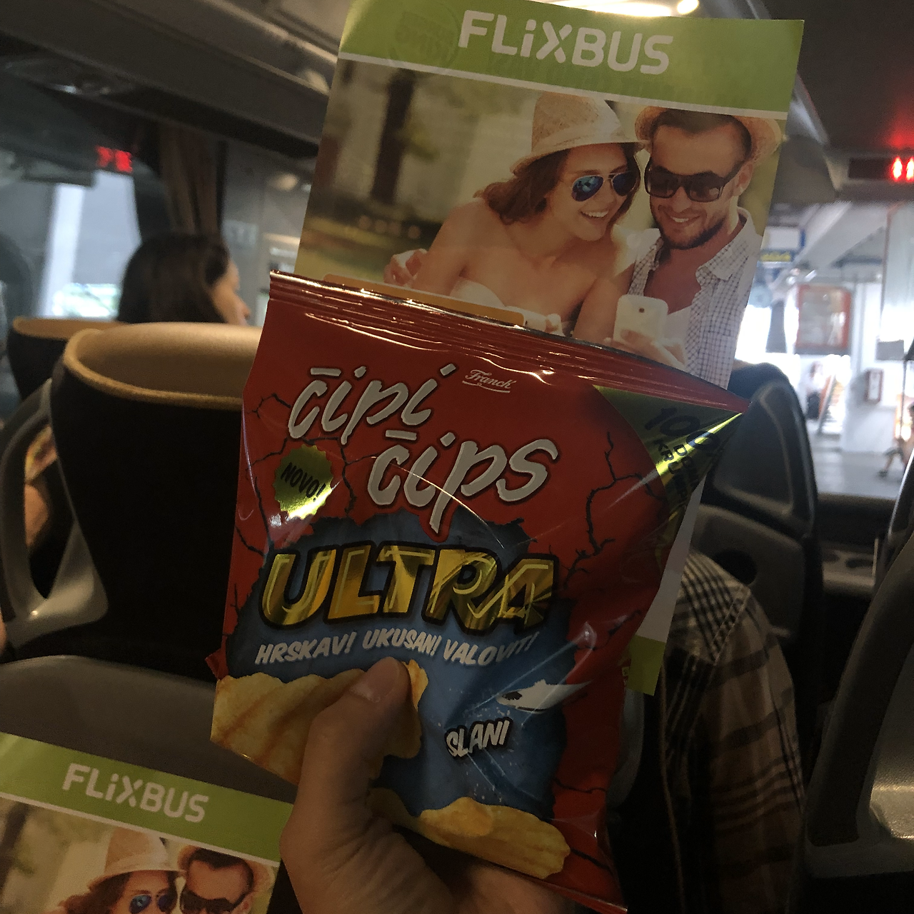 생각보다 긴 대기시간이지만 빵들과 커피로 이겨내고 버스 탑승. 친절한 직원, 그리고 플릭스 버스 생일이라며 받은 과자에 얼마 전 플릭스 버스에 데인 상처가 조금은 아물어진 듯하다.