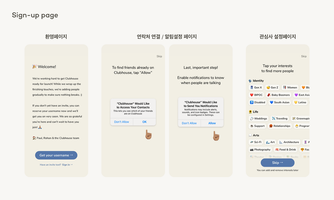 클럽하우스를 처음 만났을 때, 가입 과정이 흥미를 느낄 수 있었다.