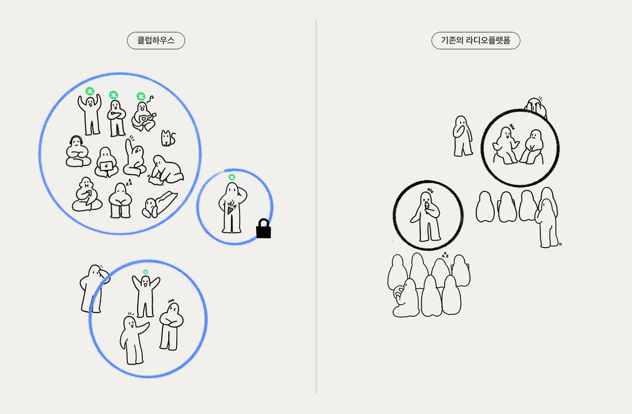 '클럽하우스'의 방들이 '트위터'의 피드들이라고 생각해보자. 그리고 '방'에서의 대화와 '피드'에서의 트윗들을 매치시켜보자. 음성이라는 매체만 '팟캐스트', '스푼'과 동일할 뿐, 오히려 트위터와 유사한 구조라고 볼 수 있다.