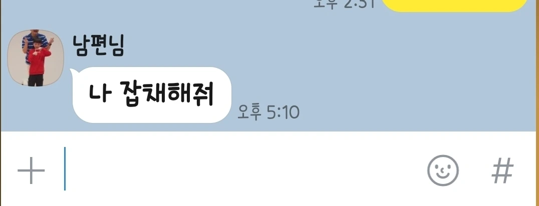 저녁 준비를 하려는데 남편에게 카톡이 왔다.