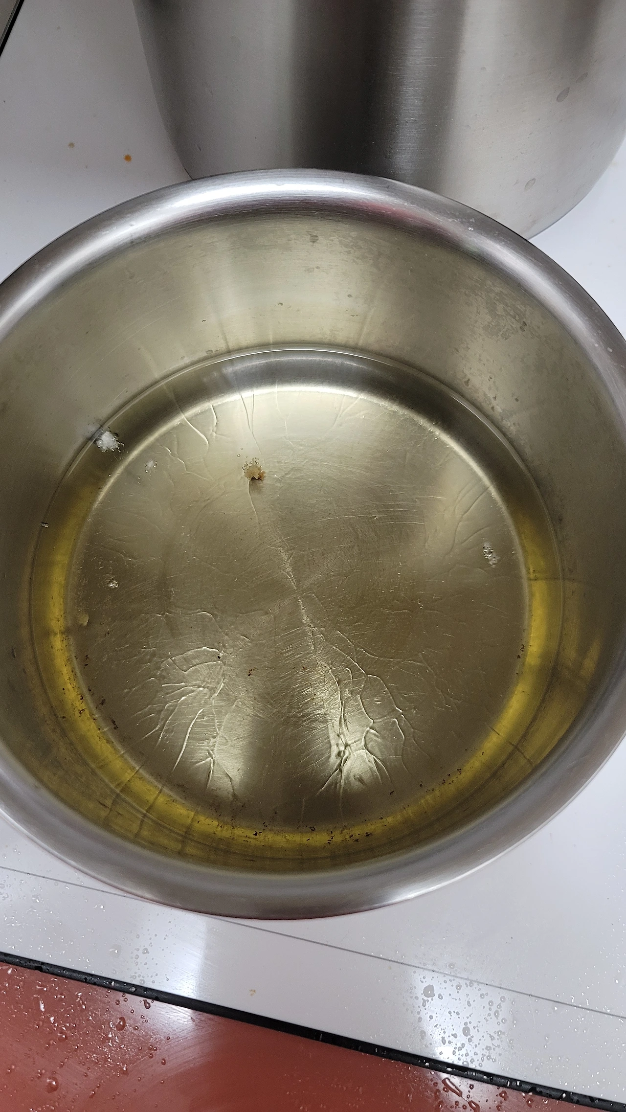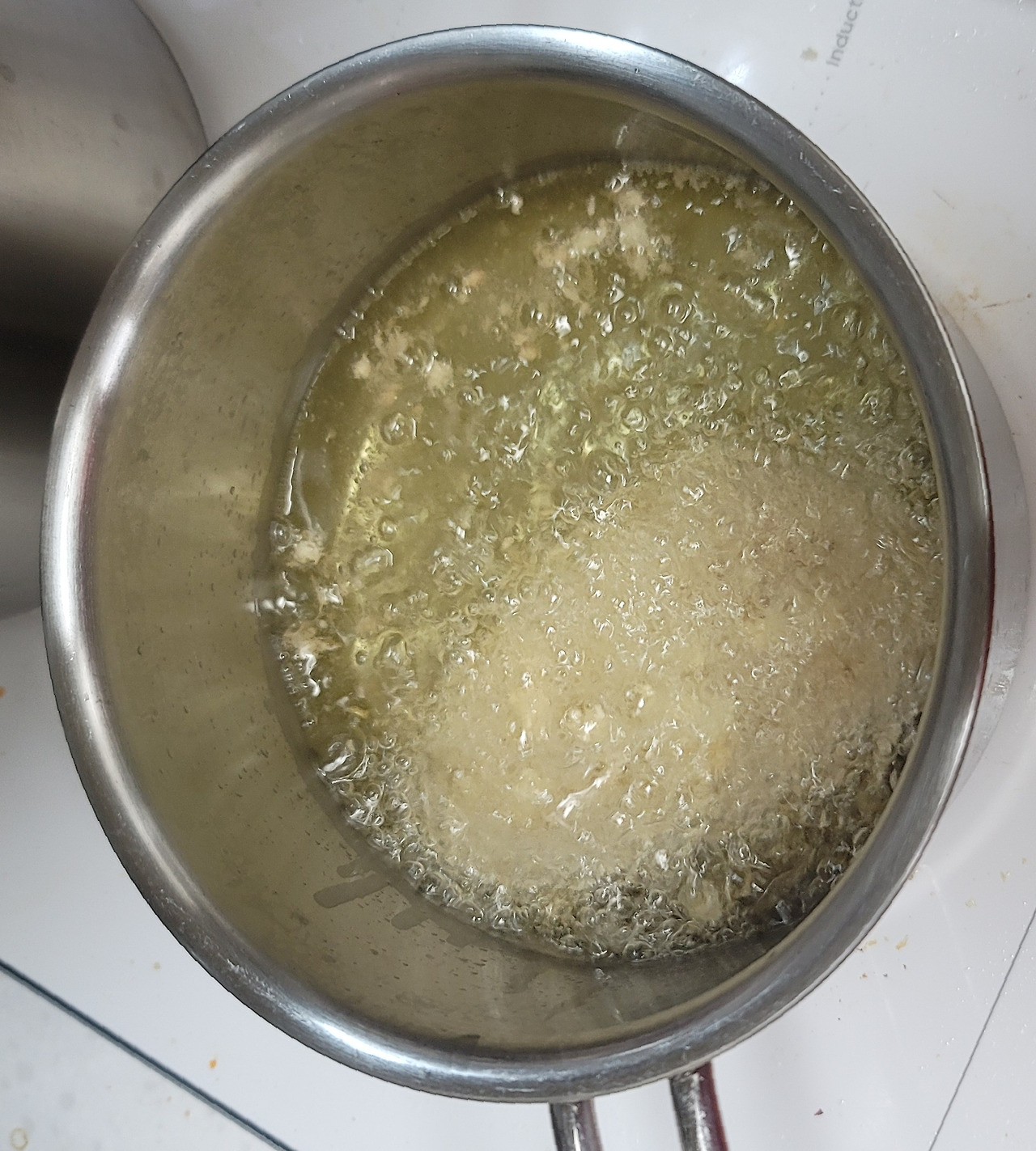 돈가스를 넣었을 때 칙~하고 떠오르면서도 색이 갈색으로 변하지 않는 온도에 맞춘다.