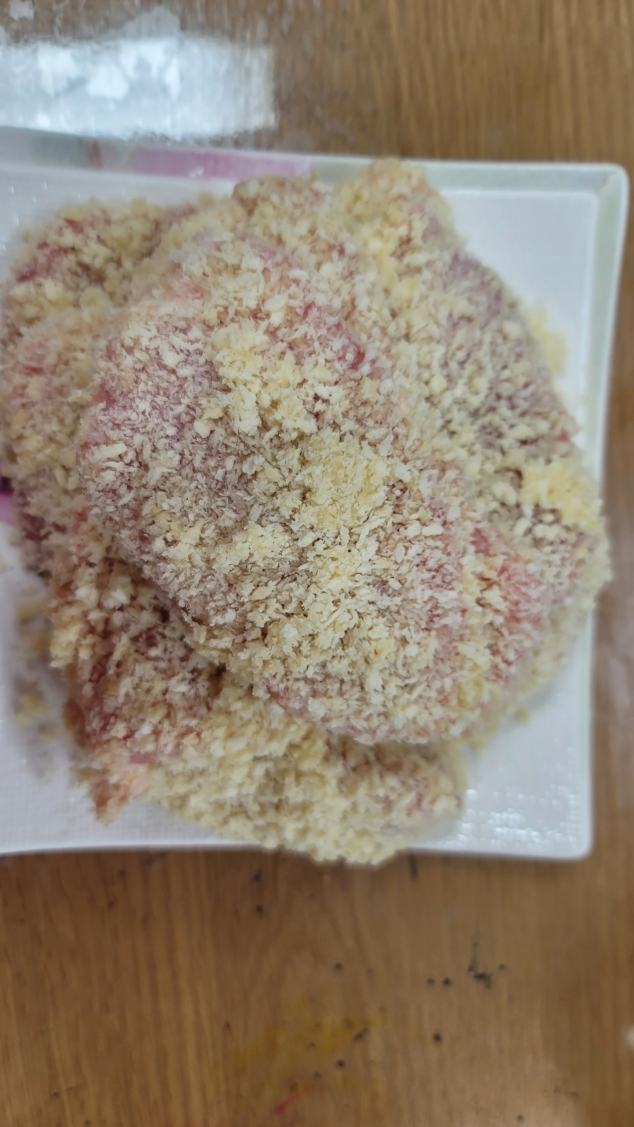고기에 빵가루를 고루 묻힌다.