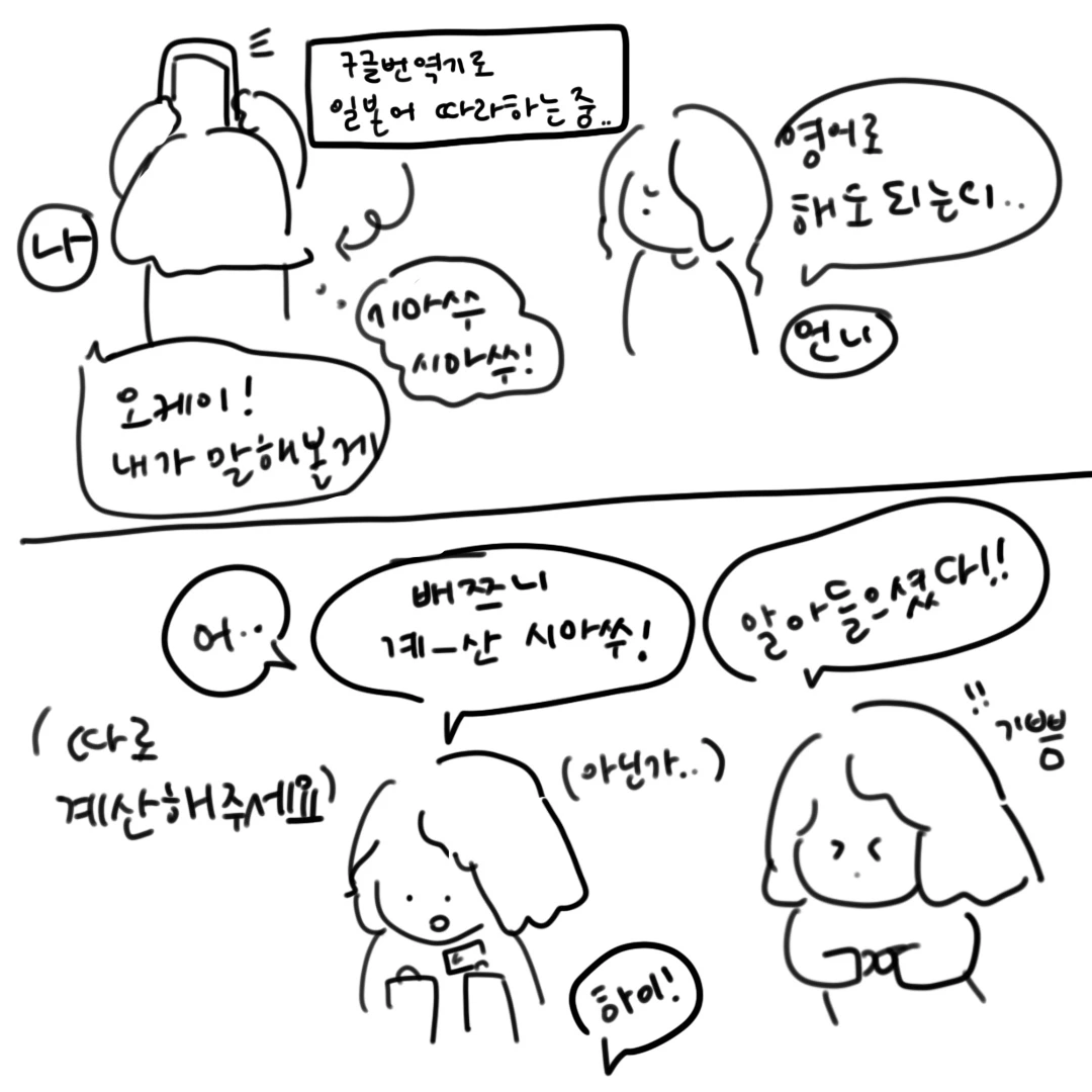 일본인 점원이 내 말을 알아들으면 기쁘고 자신감이 생긴다.