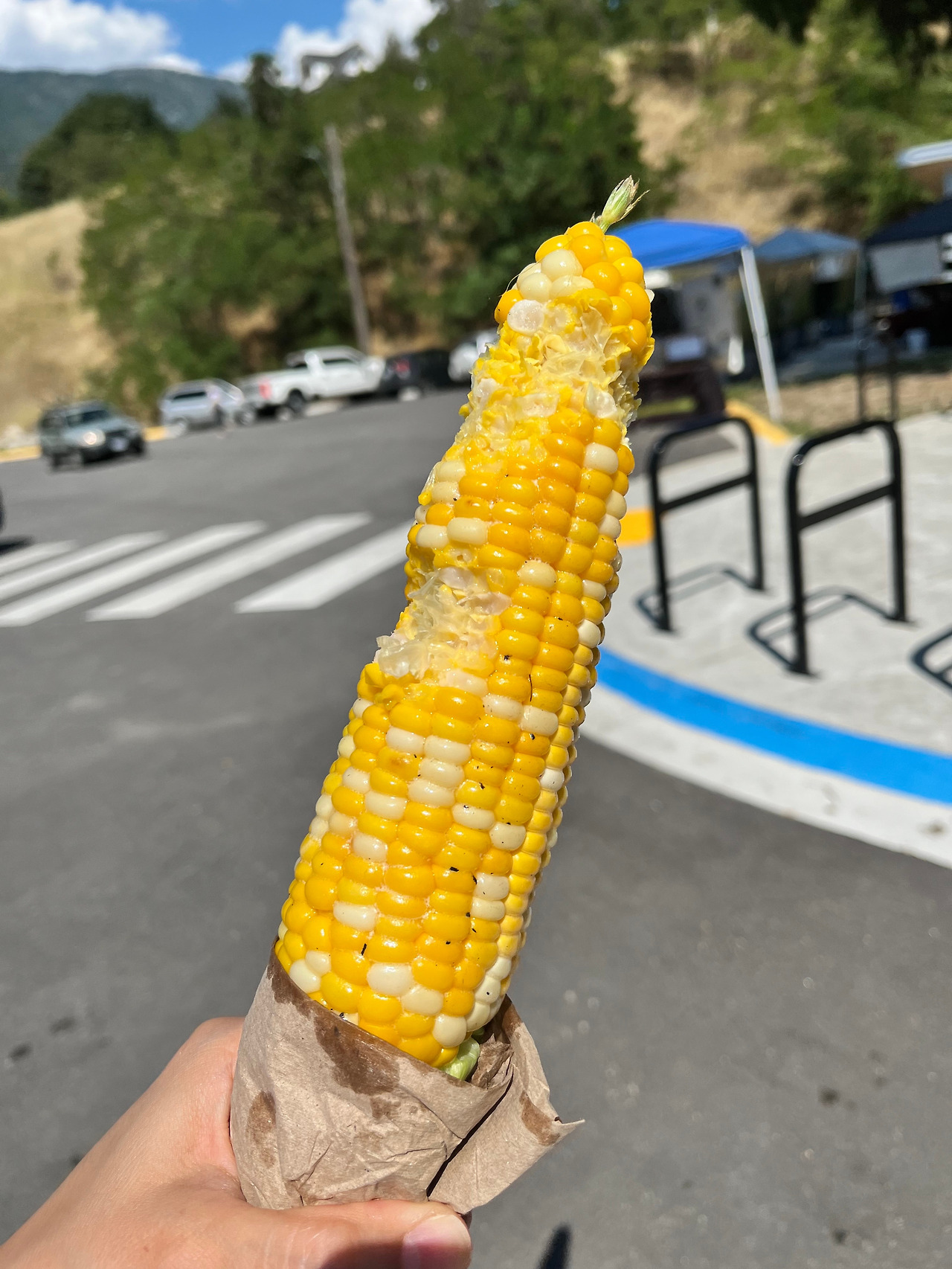 옥수수를 파는 청년들(?)과 이야기를 나눠봤는데 캠룹스라는 지역(넬슨에서 6시간 가까이 걸리는 곳)에서 왔고 여름마다 오는데 넬슨에서 몇 개월간 지내며 마켓에서 장사를 한다고 했다.