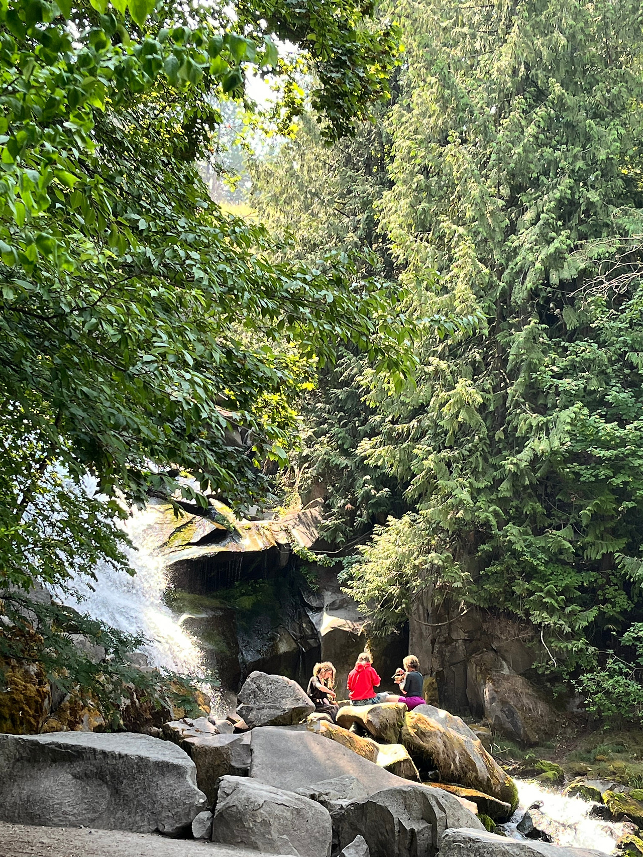 우리는 샌드위치와 샐러드를 사서 작은 폭포 근처에 앉아서 먹었다.