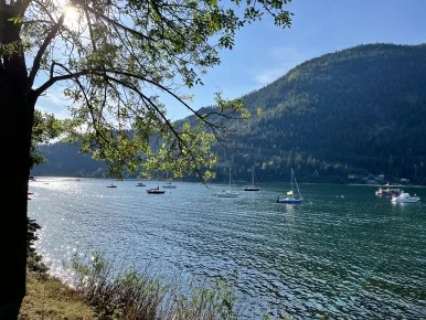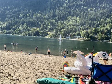 집에서 차로 15분 정도 떨어진 거리에 캠핑장이 있고, 호숫가에서 사람들은 물놀이를 즐기고 있었다.