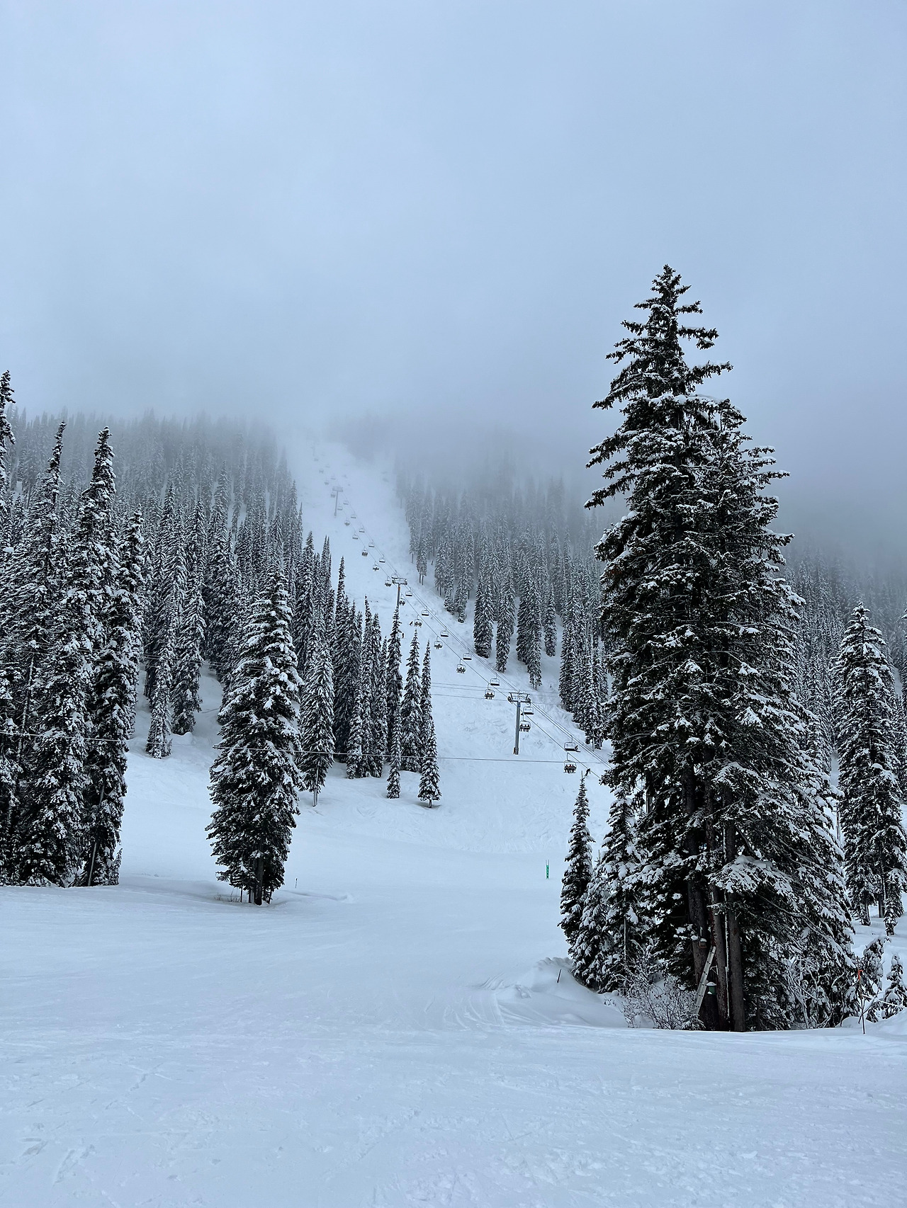 광활한 스키장의 사이즈와 풍경에 입이 떡 벌어졌다. 해가 쨍하지만 산 위에 쌓인 눈은 포근하고 엄청난 스케일의 숲에 둘러싸인 스키장은 바라보는 것만으로도 힐링이 되었다.