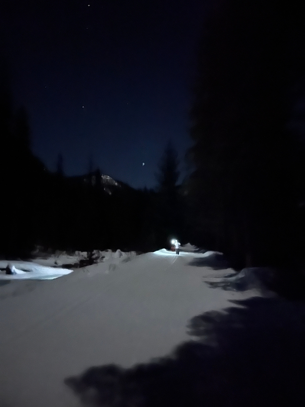 그리고 밤이 긴 겨울의 백미는 머리에 랜턴을 쓰고 한 밤중에도 즐길 수 있는 야간의 크로스컨트리 스키다!