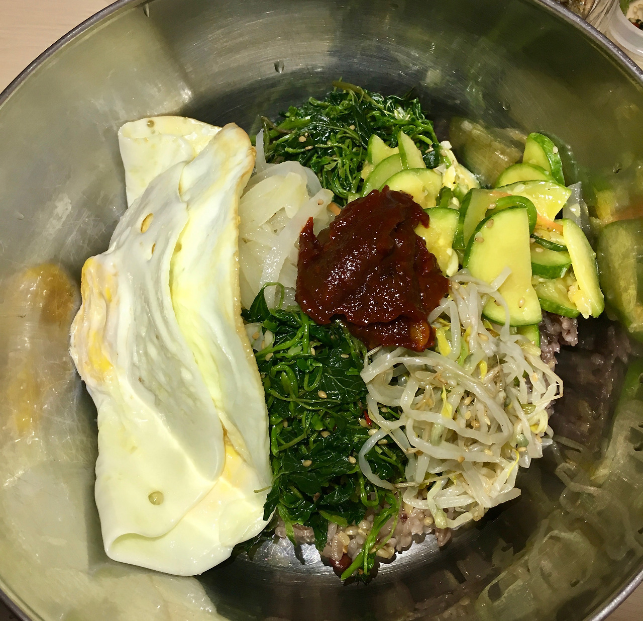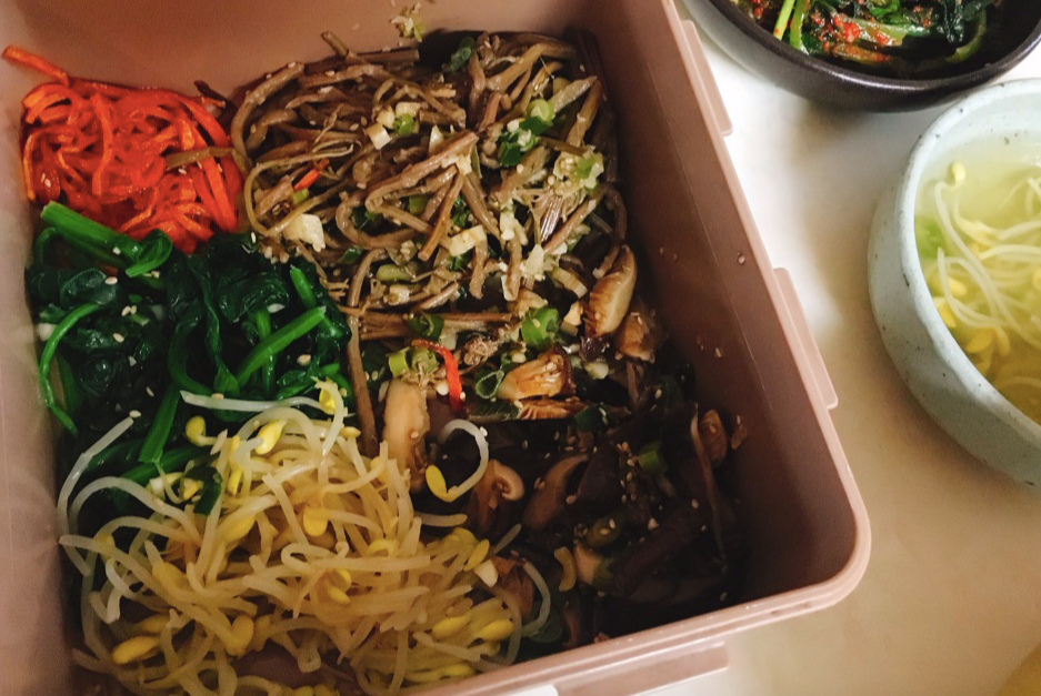 쓱쓱 계속 비벼가며 먹는다. 이제는 형체를 잘 알아볼 수 없이 뒤섞인 나물들이지만 입 안에 들어가니 엄마가 아침에 무슨 나물들을 무쳤는지 안 보고도 알겠다.