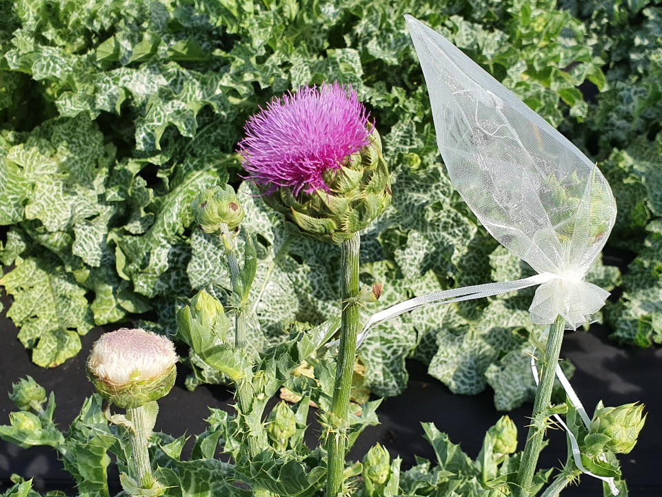 오른쪽 사진은 밀크시슬입니다. '흰무늬엉겅퀴'라고 하여, 뒤에 보이는 잎의 흰 무늬를 볼 수 있어서 그런 이름이 붙어 있습니다.