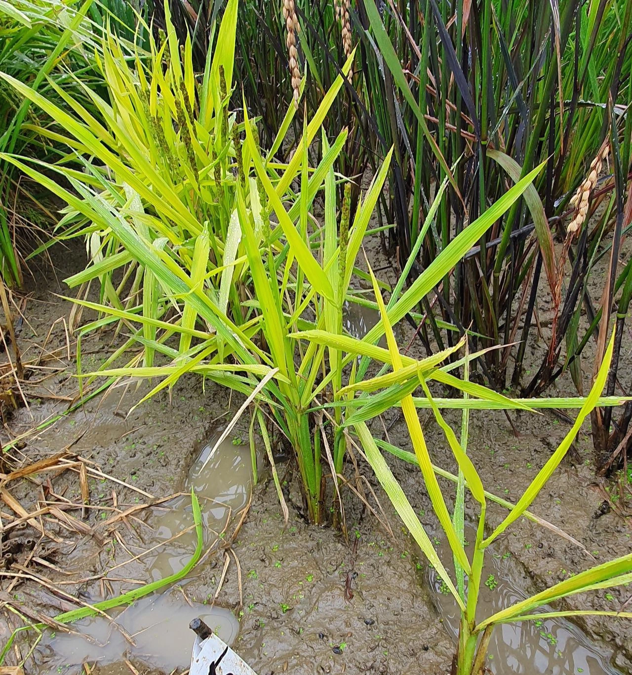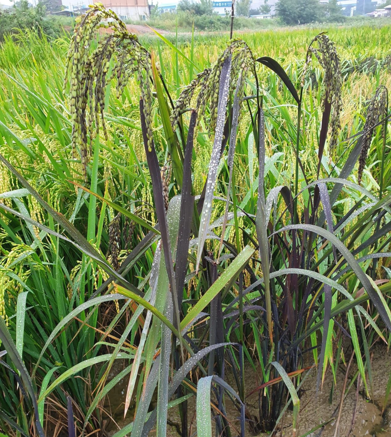 우리 연구실에서 개발한 흑향찰벼 '서시1호'를 많이 심었는데, 갑툭튀한 잡초벼 2개를 봉지를 씌워 꽃가루가 섞이지 않게 하고 종자를 따로 받아 심어 비교해 보았습니다. '서시1호'의 형질을 일부 가지고 있어서, 그 벼에서 유래한 것임을 알 수는 있으나, 어마어마하게 다양한 방식으로 형질이 분리하여, 교잡에 의한 것이 아닌 것 같다고 추정하고 있습니다. 벼 잎과 종자의 색이 엄청나게 변이를 일으켰다는 것을 통하여, 잡초벼가 유색미의 기원을 설명하는 데에도 도움을 주는 연구가 될 것이라고 기대하고 있습니다.