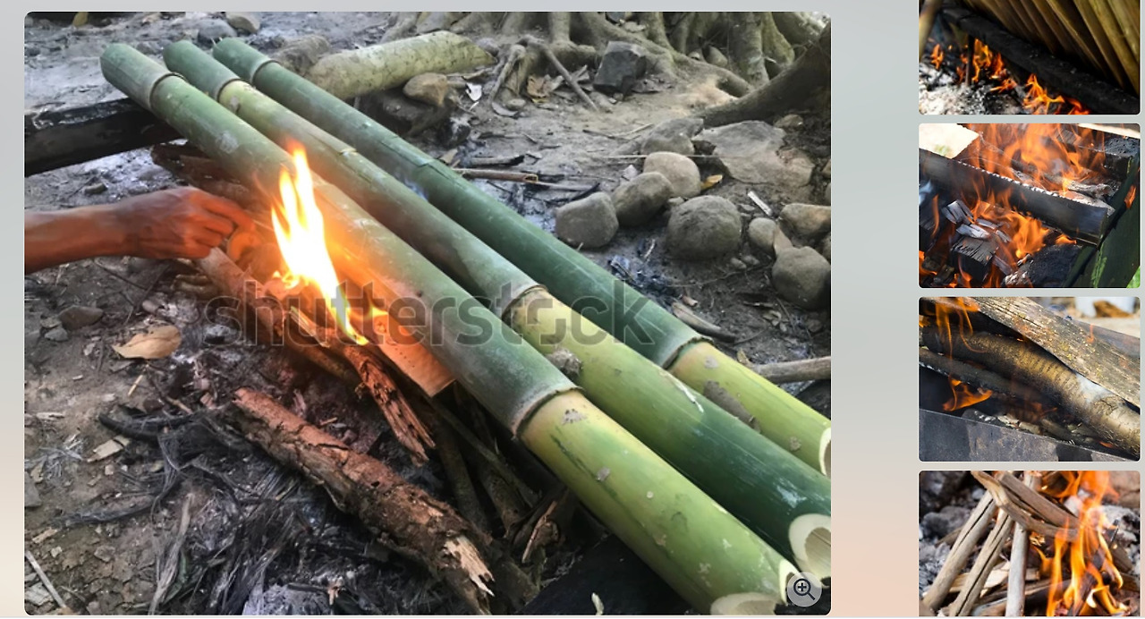 필리핀의 전역에서 발견되는 죽통밥. 쌀을 대나무 안에 넣고 불로 밖에서 굽듯이 열을 가해 밥을 짓는다. 사진출처: Shuttlecock