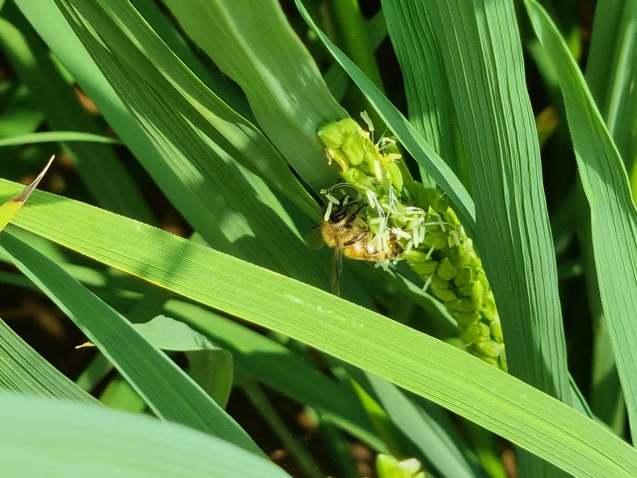벼는 원래 자기 꽃의 꽃가루로 수정하지만, 파리나 벌 등 꽃가루를 먹는 곤충에 의해, 다른 꽃가루가 유입될 수 있습니다.