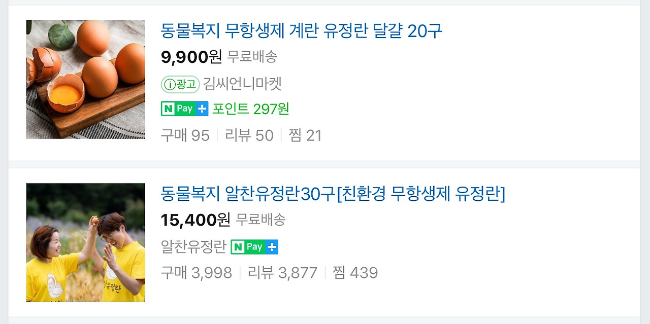 한국에서는 항상 무조건 개수가 많고 저렴한 계란을 찾아서 구매했다. 가끔은 동물복지 달걀이 마트에 진열되어있는 걸 보았지만 상대적으로 비싼 가격에 시도해볼 염두조차 나지 않았다. (현재 온라인 스토어 상의 동물복지란의 가격을 비교한 결과 10구당 평균 5000원 정도에 판매되고 있다는 것을 알 수 있다)