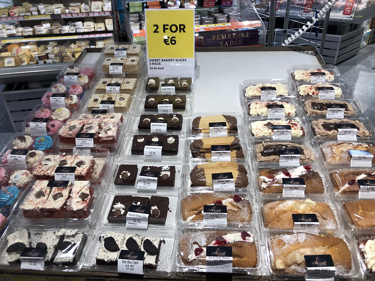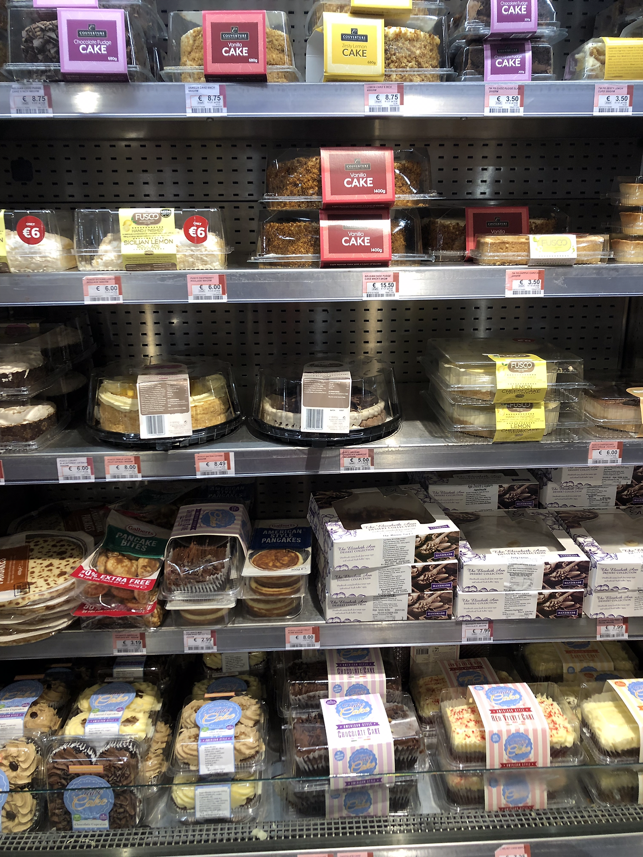 일반적인 빵 코너 옆에는 달달한 디저트류들이 줄지어 기다리고 있다. 여러 종류의 파운드케이크와 브라우니, 그리고 케이크류, 머핀들도 대부분 맛있는 편이지만 사실은 지나치게 단 것들이 많다. 가끔 단 게 필요할 때면 쇼케이스에 진열된 미니 케이크나 타르트를 5-8유로 정도 가격에 먹을 수 있었다. 모두 대형 마트 안에서 판매되는 것들이지만 작은 가게들과 연계해 이곳에 납품하는 방식으로 밑에 사진에 보이는 빵들은 대부분 ‘홈메이드’ 방식으로 만들어진다. 특히 케이크는 유통기한도 짧고 하루에 정해진 수량이 있기 때문에 인기 있는 제품들은 빨리 빠져나가 먹고 싶은 게 있다면 타이밍을 잘 잡는 게 중요하다.