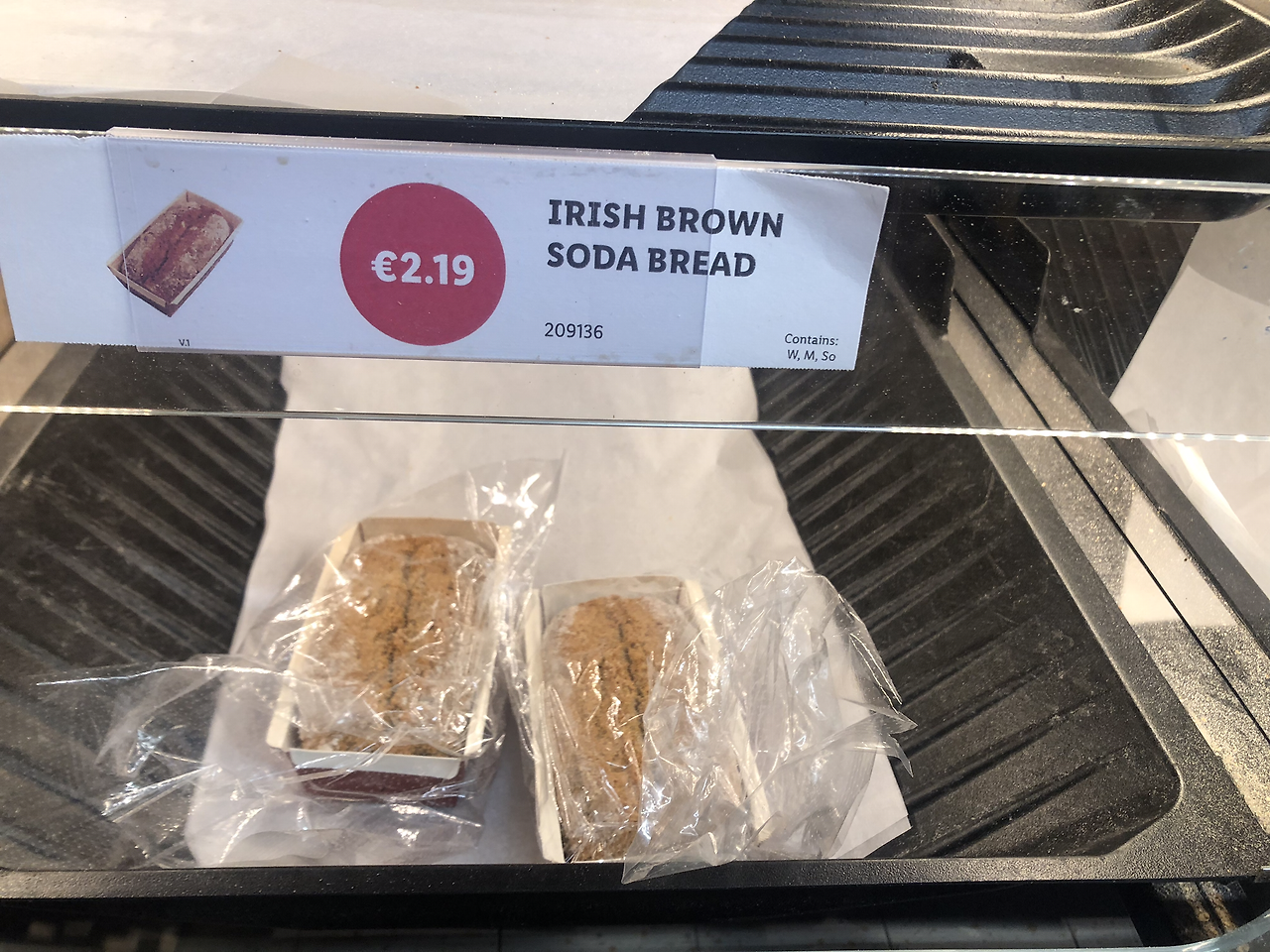 마트 어딜 가든 보이는 소다 브레드는 아일랜드에서 사랑받는 빵 중 하나이다. 궁금증에 마트에서 사서 처음으로 맛본 소다 브레드는 충격 그 자체였다. 말로 설명할 수 없는 퍽퍽함과 담백함... 빵순이임에도 절반도 못 먹고 쓰레기통 안으로 보내야만 했다. 일반적으로 마트에서 판매되는 소다 브레드의 가격은 약 3천 원 가까이 되는데, 부담되지 않게 자주 먹을 수 있는 착한 가격이다.
