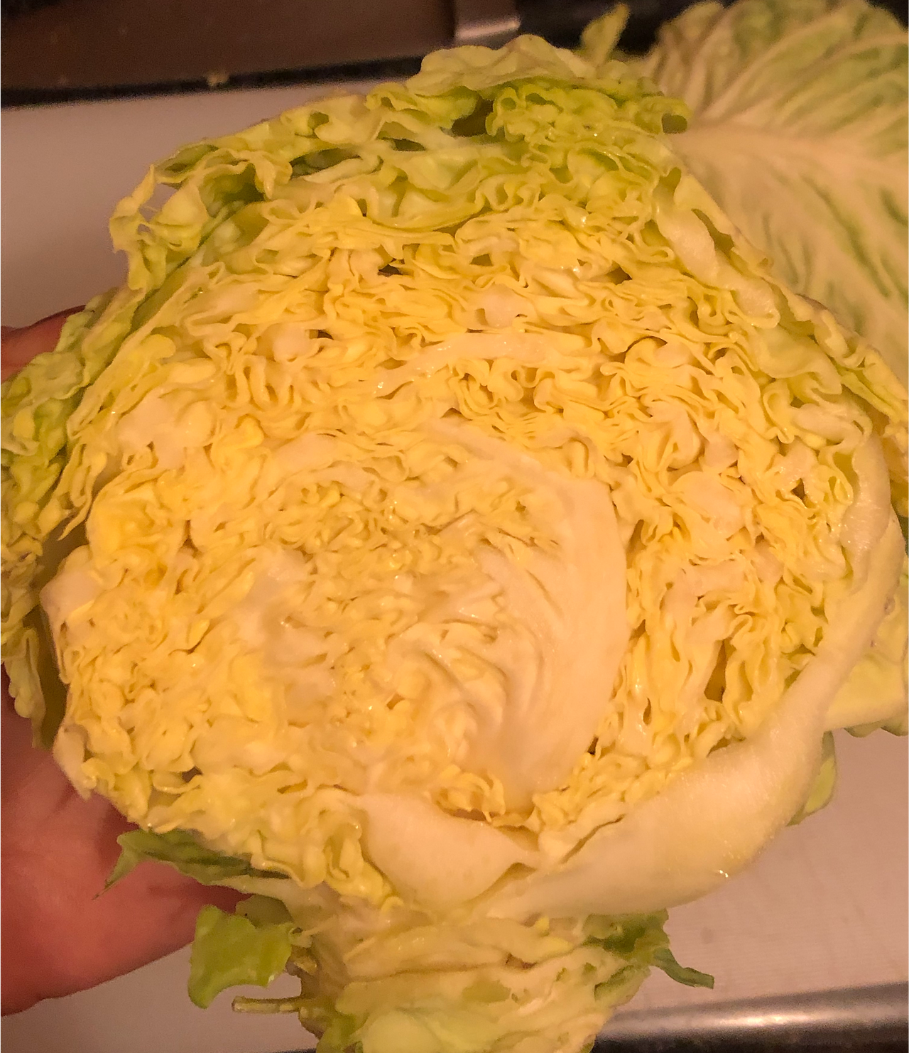 흔히 우리가 먹는 양배추는 식감이 질기고 억세다면, 사보이 양배추는 겹겹이 있으면서도 부드러워 마치 우리가 김치를 만들 때 사용하는 배추와 식감이 비슷했다. 마치 배춧잎이 겹겹이 들어있는 느낌이다. 손으로 뜯어 맛을 보니 딱 배춧잎의 식감이다. 부드럽게 씹히는 맛이 나쁘지 않다.