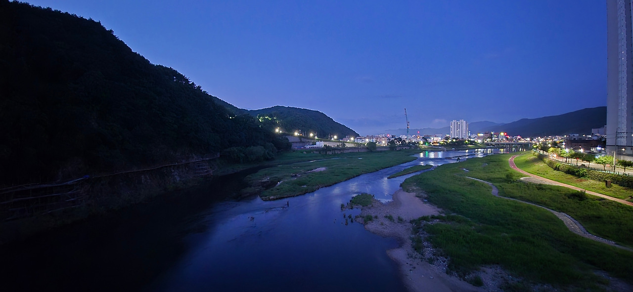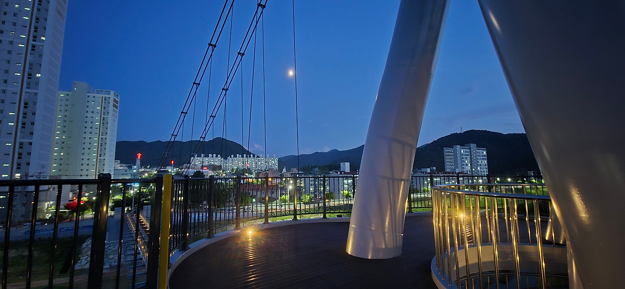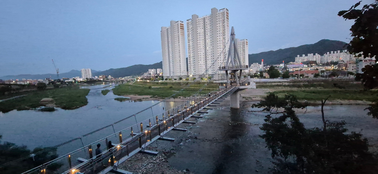 홍천의 새로운 인도교 송학교에서 야경을 맞이하다.