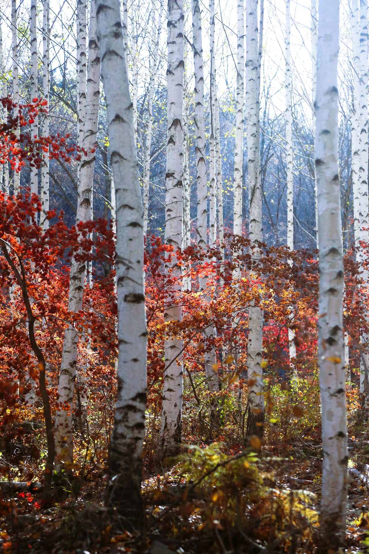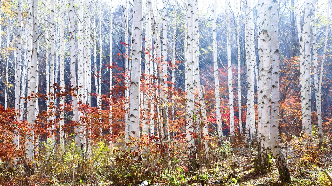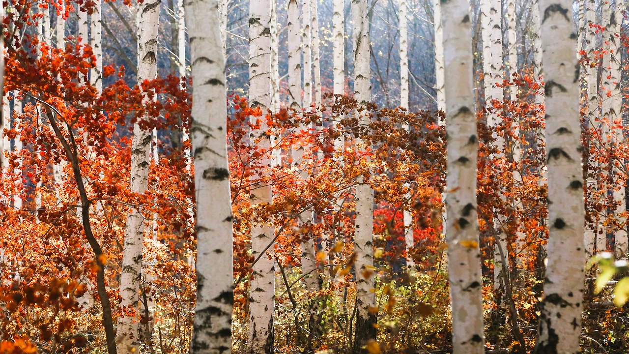 붉은 단풍과 흰 자작나무가 만날 때