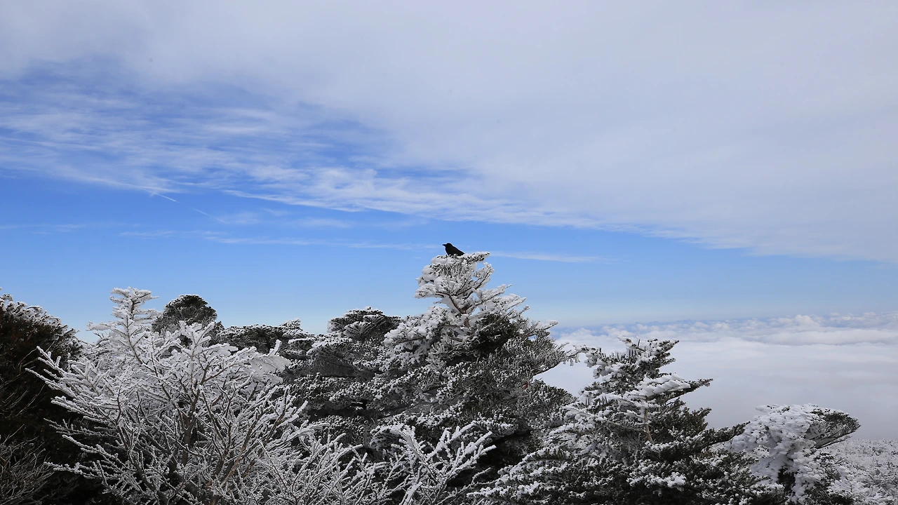 한라산 설경이 아닐까 싶네요.