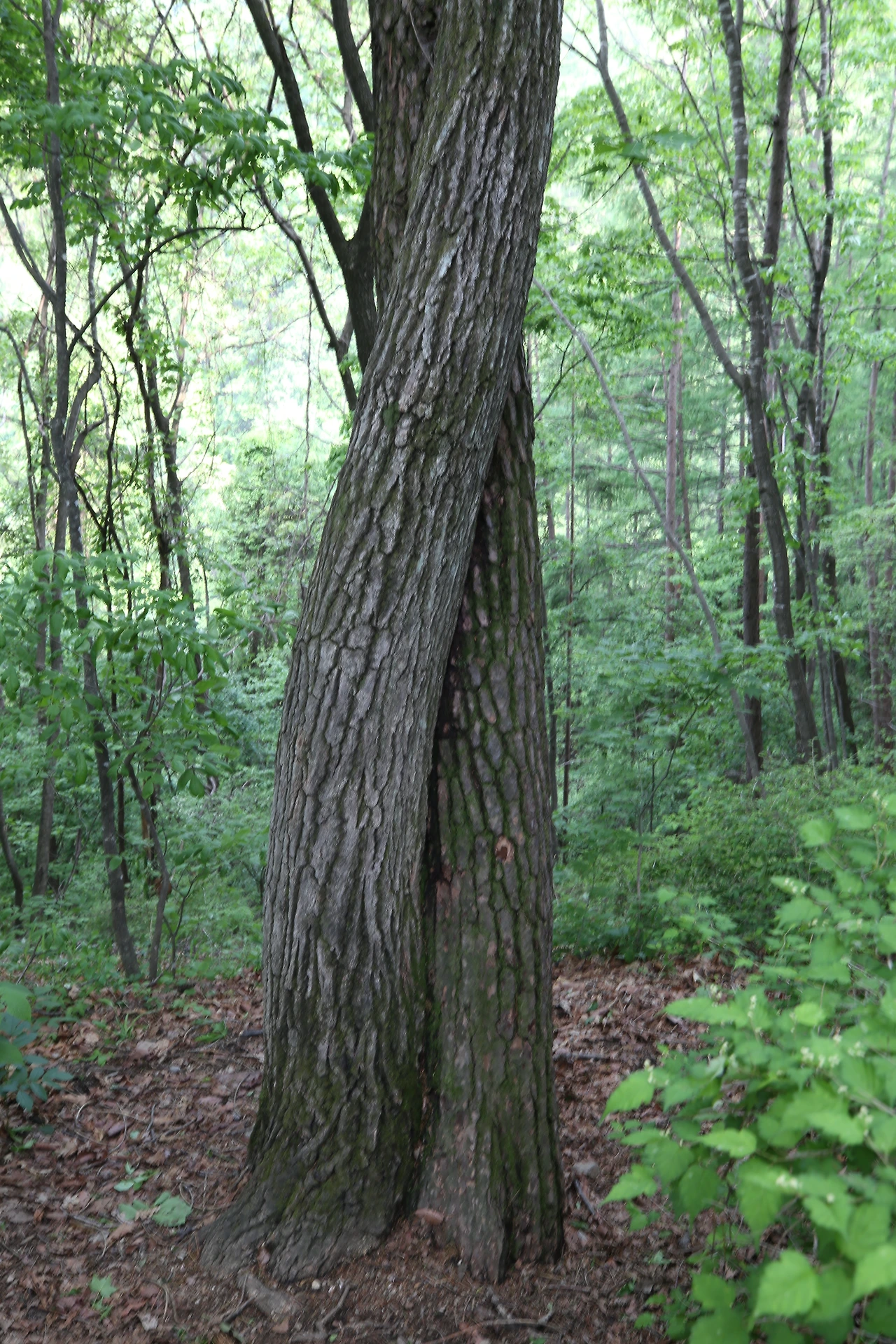뿌리가 서로 얽히고 줄기가 하나가 된 **'연리지(連理枝)'**를 만났습니다.