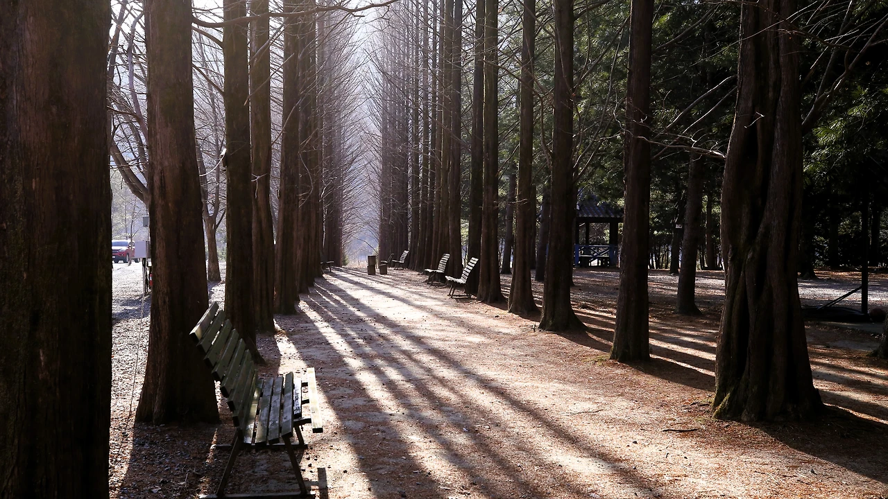 메타세쿼이아 숲이 서 있다.