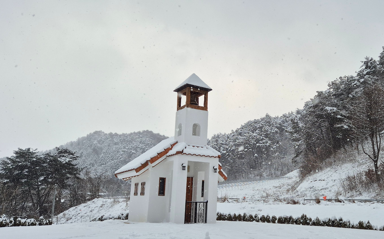 겨울에는 하얀 눈 위로 고고하게 선 종탑이 또 다른 풍경을 선사합니다.