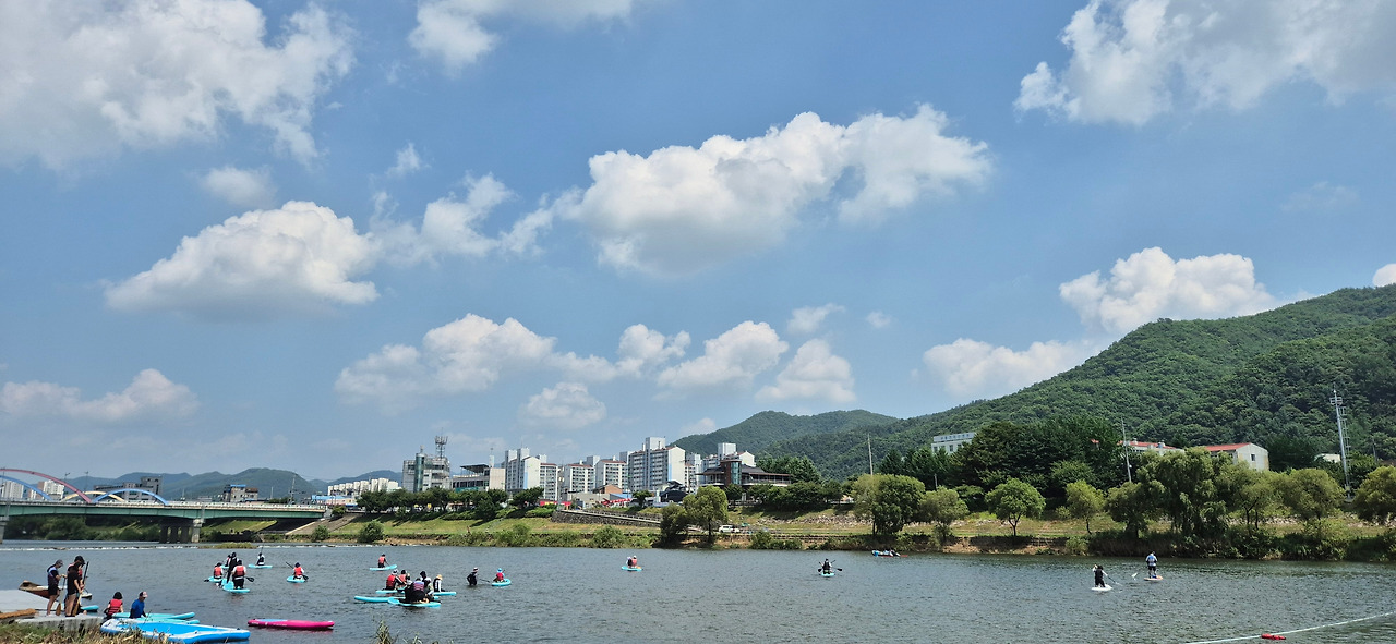 햇살을 머금은 강물 위에선 패들보드가 부유하고,