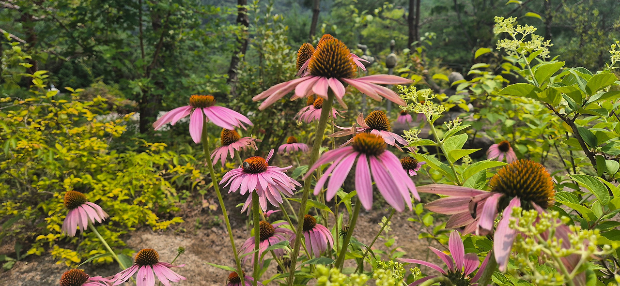 강변에 핀 에키네시아의 자줏빛 꽃송이는