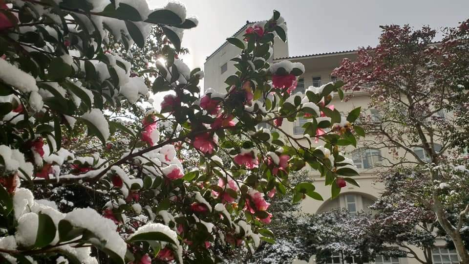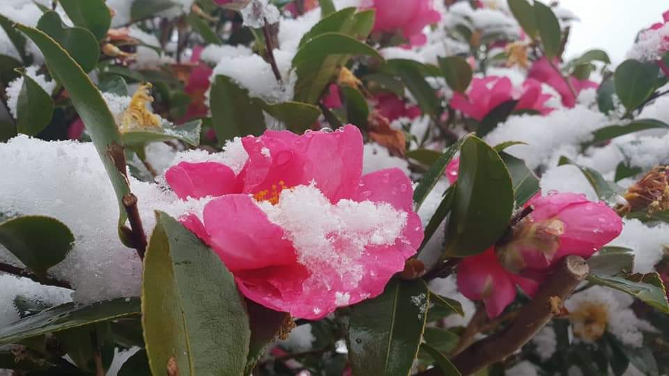 겨울에 동백꽃 위에 내린 눈을 볼 수 있는 행운이 찾아왔다.