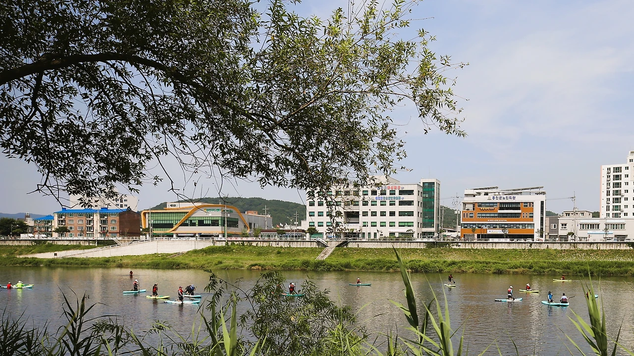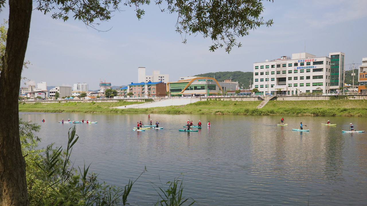 강 위에 떠 있는 수십 개의 패들보드는 또 하나의 홍천의 관광자원이 됩니다.